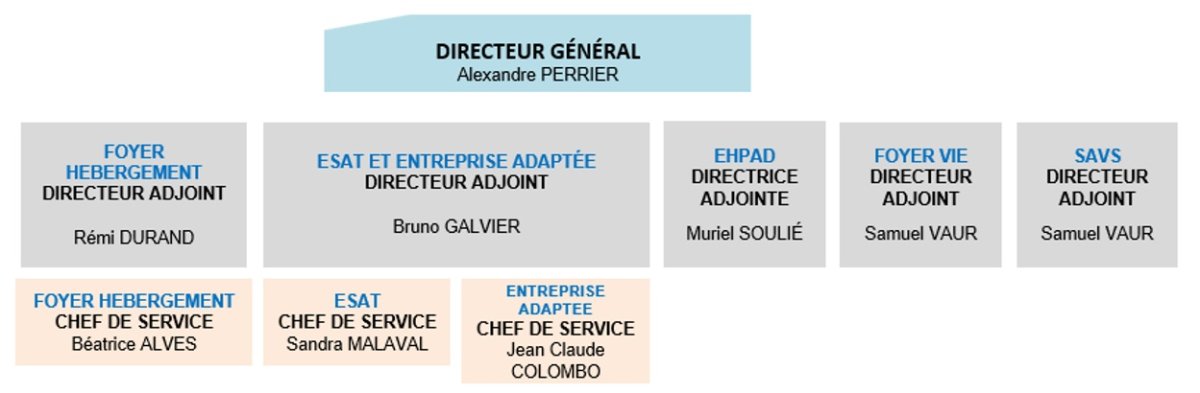 Le Directeur Général travaille conjointement avec l’équipe de Direction composée des Directeurs Adjoints et des chefs de services de chaque structure.